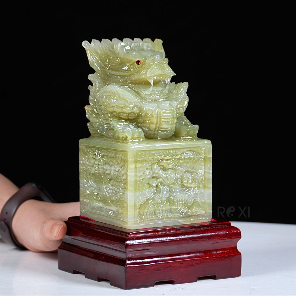 - Ấn rồng bằng ngọc quý, đá quý mang trong mình nguồn năng lượng dương của đất trời, có tác dụng trấn trạch, tăng cường dương khí, vượng khí cho gia chủ.