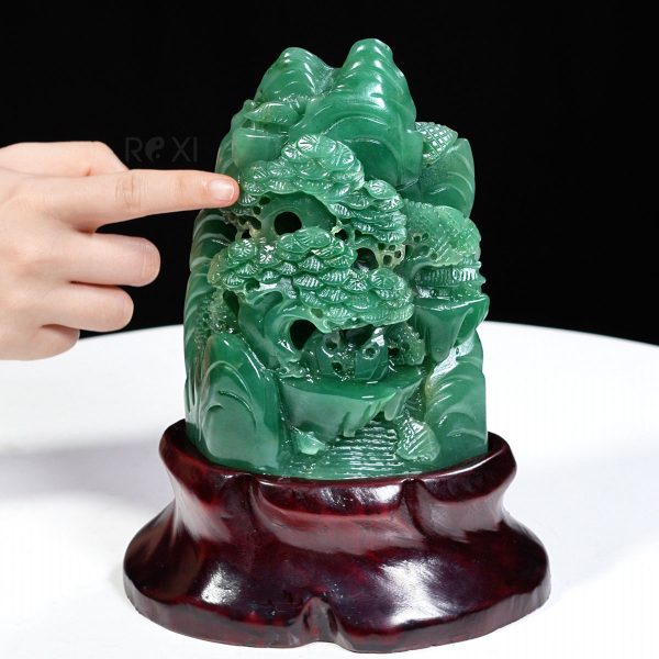 Mỗi chi tiết trên Bồng Lai Tiên Cảnh đều được chạm khắc tỉ mỉ, từ những ngọn núi cao chót vót đến những con suối nhỏ len lỏi qua từng khe đá. Các nghệ nhân đã dùng kỹ thuật cao cấp để biến những khối ngọc thô sơ thành một tác phẩm nghệ thuật hoàn mỹ. Điều này không chỉ thể hiện tài năng và sự sáng tạo của người nghệ nhân mà còn làm nổi bật lên giá trị thẩm mỹ và phong thủy của tác phẩm.