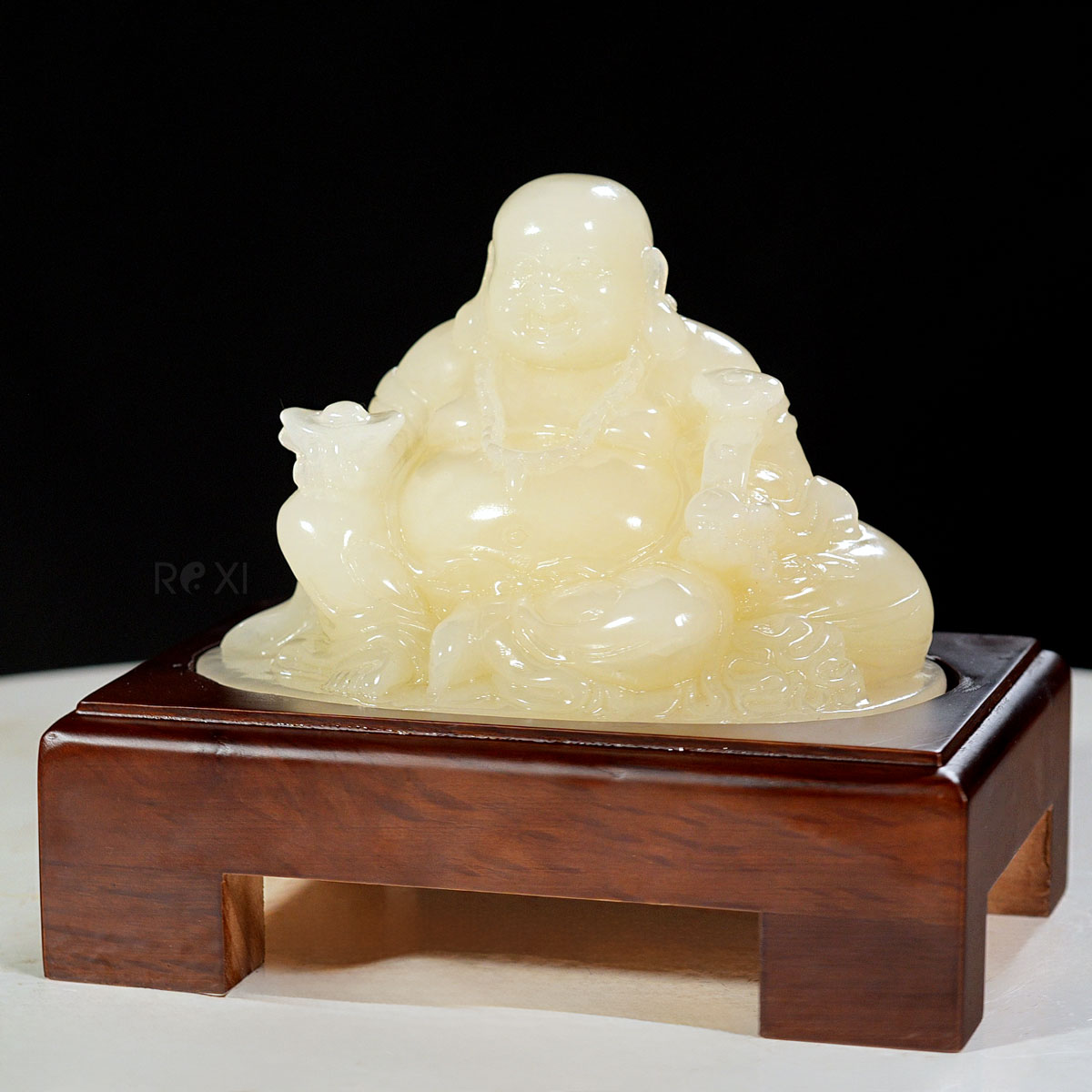 Tượng Di Lặc bằng ngọc tự nhiên không chỉ là một tác phẩm nghệ thuật mà còn mang ý nghĩa phong thủy sâu sắc: